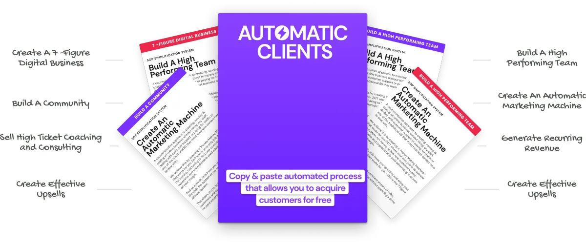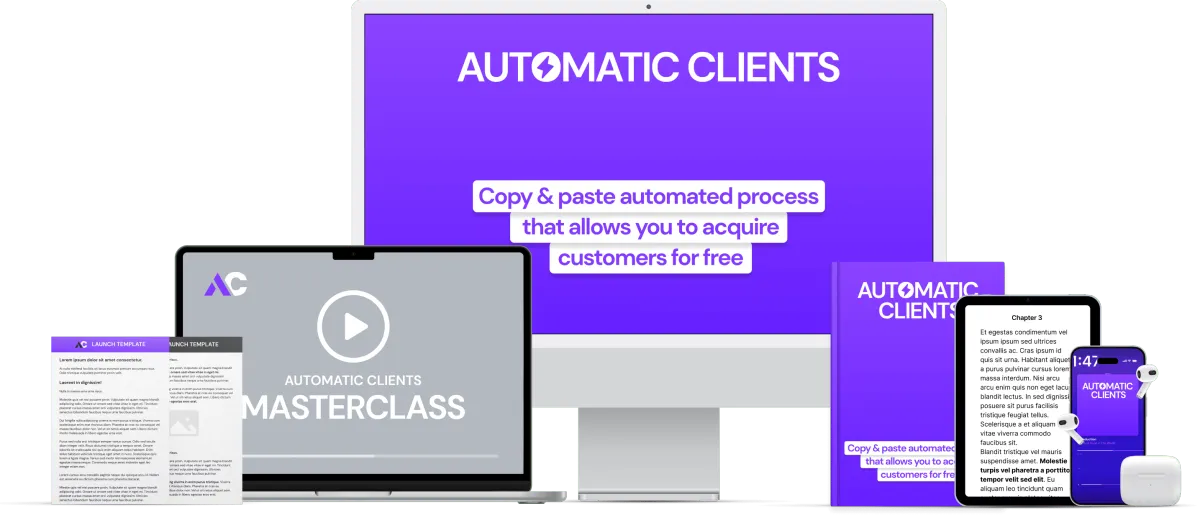[INSERT ANSWER] You are getting a copy of the Automatic Clients ebook, available instantly. You are getting the highly praised 6+ hour Advanced Acquisition Theory course. You are getting our advanced Economics Calculator. You are getting our 2,854 Profitable Niches spreadsheet. You’re getting the 7-Day Fast Start video series, our best $200,000 Advertisement, access to our FB community, our 7-Figure Video Sales Letter script, and a 26-step Launch Checklist.